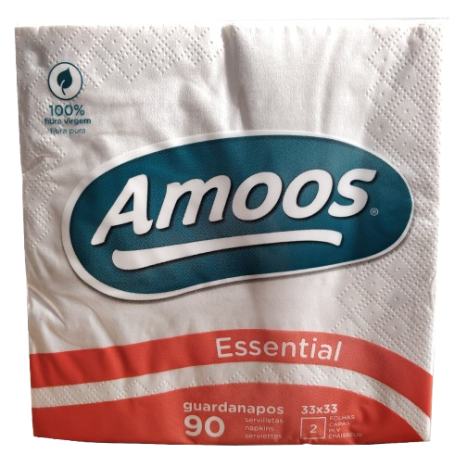 Os Guardanapos Amoos Essencial 33×33, de folha dupla e toque macio, são produzidos com 100% de celulose a partir de florestas geridas de forma responsável. Certificados pelo FSC e Ecolabel, são aptos para contacto alimentar e ideais para o uso diário, oferecendo absorção superior e grande resistência.