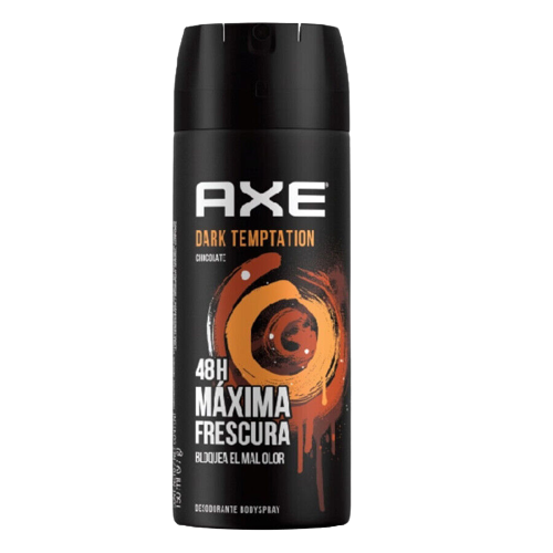 O desodorizante AXE Body Spray Dark Temptation combina o aroma subtil do chocolate com fragrâncias gourmand frescas, incluindo chocolate quente, âmbar e pimenta vermelha. Oferece proteção contra odores, com um aroma rico, suave e de alta definição.