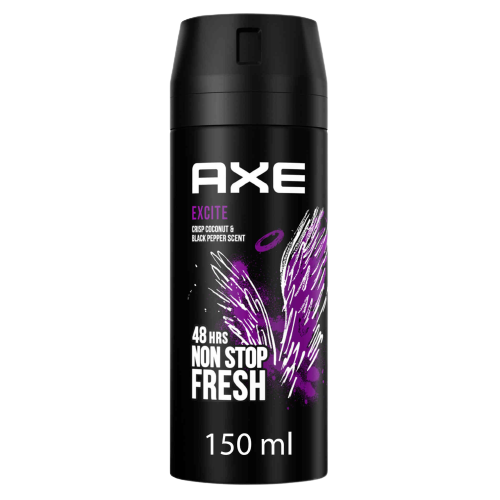 Sinta-se fresco todo o dia com a fragrância única excite. Desodorizante axe body spray excite é uma fragrância amadeirada com um toque de doçura, que combina uma mistura de notas de coco, avelã e caramelo. Combate eficazmente o suor indesejado, cuida das axilas. Agitar bem antes de cada utilização. Aplique nas axilas a uma distância de 15 cm. Aplique o spray nas axilas para sentir a diferença.