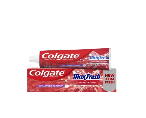 O Colgate Dentífrico Max Fresh Spicy, em gel, oferece uma explosão de frescura intensa e duradoura. Com cristais de arrefecimento que se dissolvem na escovagem, proporciona hálito fresco e proteção contra cáries, fortalecendo o esmalte dentário.