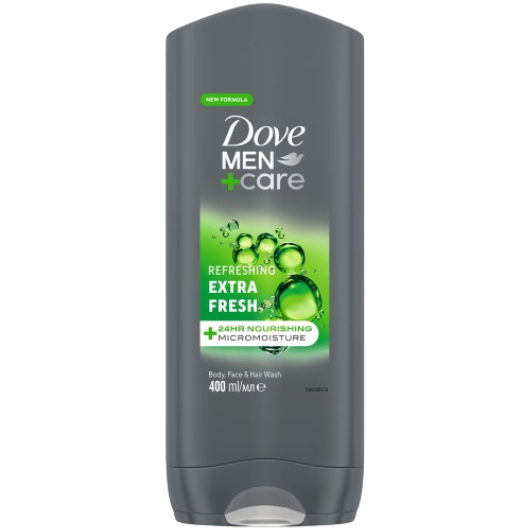 O Gel de Duche Dove Men+Care Extra Fresh utiliza a tecnologia MicroMoisture para hidratar a pele e protegê-la contra a secura e irritação, deixando uma fragrância revigorante e uma sensação de frescura.