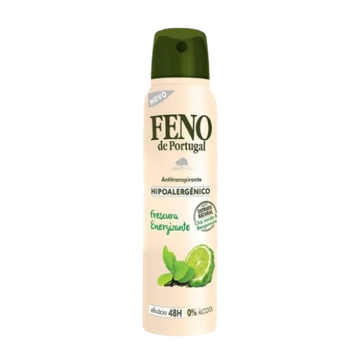O Feno Deo Spray Frescura Energizante é um antitranspirante em spray com fórmula hipoalergénica de última geração, desenvolvido sem álcool e enriquecido com extratos naturais de chá verde e bergamota, garantindo frescura e proteção contra o suor e os maus odores.