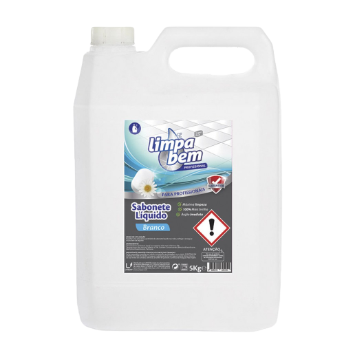 Limpabem Sabonete Líquido Branco Profissional 5L – Ideal para uso frequente em ambientes profissionais, este sabonete líquido proporciona uma limpeza eficaz e uma sensação de frescura. A sua fórmula suave respeita a pele, tornando-o adequado para uma utilização diária em diversos espaços.
