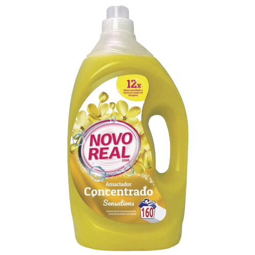 Amaciador ultra concentrado Novo Real Sensation para uma roupa suave e perfumada. A embalagem de 4 litros rende 160 doses.