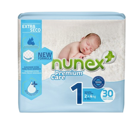 As fraldas Nunex Extra Seco T1, para bebés de 2 a 4 kg, oferecem uma proteção superior com a sua camada interior extra que melhora a absorção e retenção, mantendo a pele do seu bebé seca.
