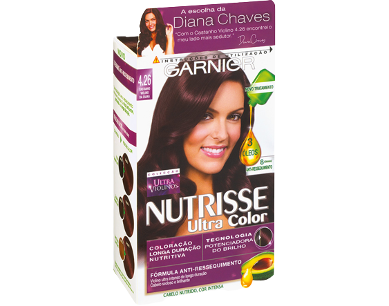 Coloração permanente nutritiva Nutrisse, na tonalidade Castanho Violino 4.26, que garante 100% de cobertura dos cabelos brancos e uma cor rica e brilhante de longa duração. Cabelo profundamente nutrido e suave até 8 semanas.