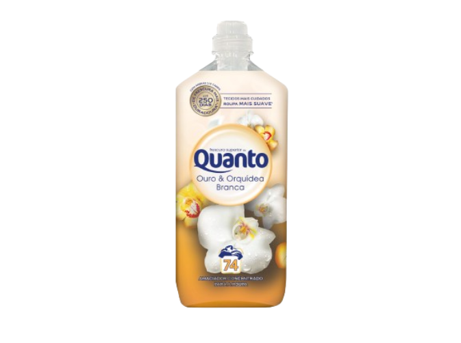 Amaciador Concentrado Ouro e Orquídea. Encante-se com a elegância e delicadeza de Quanto Ouro & Orquídea Branca, com um luminoso bouquet floral que deixa a sua roupa suave e perfumada.