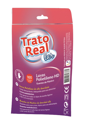 Luvas de polietileno descartáveis, ideais para uso alimentar e doméstico.