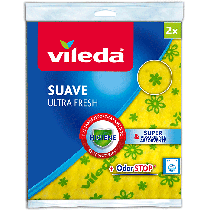 O Vileda Pano Suave Amarelo oferece grande capacidade de absorção e limpeza em todo o tipo de superfícies. O seu tratamento antibactérias reduz o crescimento de bactérias e a formação de maus odores, enquanto a sua estrutura 3D e 30% de microfibras proporcionam um maior poder de limpeza.